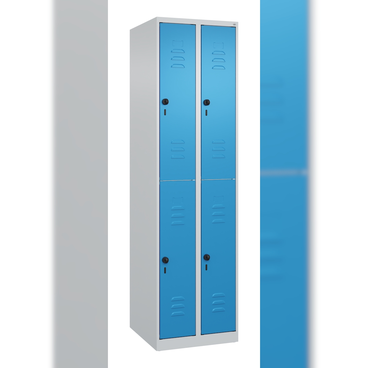 C+P Spind Classic PLUS, 4 Abteile, HxBxT 185x50x50cm, Sicherheitsdrehriegel, Hellgrau/Lichtblau von PROREGAL