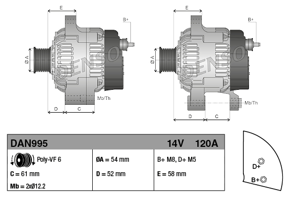DENSO Generator DAN995 14V 120A für ALFA ROMEO FIAT LANCIA 51854902 51793678 52003507
