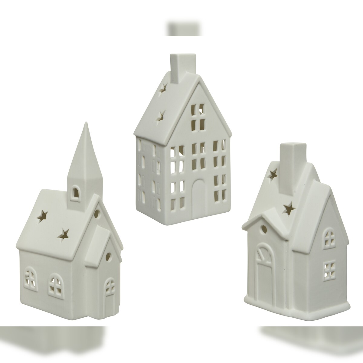 1 Teelichthalter Porzellan 16cm - Windlicht Laterne in Haus Form Teelicht Kerzenhalter Weihnachten Winter Tischdeko Windlichthalter Tischlaterne Weiß