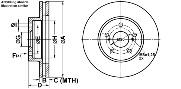 Ate Disco freno 24.0128-0190.1 anteriore, ventilato, 1 Pezzo