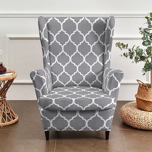 Fodera elasticizzata per poltrona con schienale alto, fodera in poliestere con stampa floreale/a righe/geometrica per poltrona, protezione decorativa rimovibile per mobili