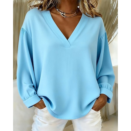 Per donna Blusa Blocco di colori Elegante Casual Manica Lunga Scollo a V Top Regolari Quotidiano Uscire Weekend Patchwork Rosa Vino Azzurro cielo Verde Autunno