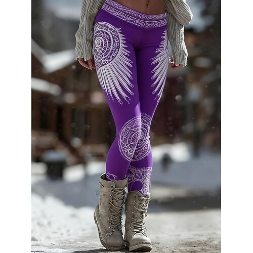 Per donna Leggings Vacanza Vintage Stile Etnico Lunghezza intera Vita Alta Grafico Motivo Geometrico Astratto Morbido Confortevole Alta elasticità Formale All'aperto Vacanza Blu Nero Viola Beige