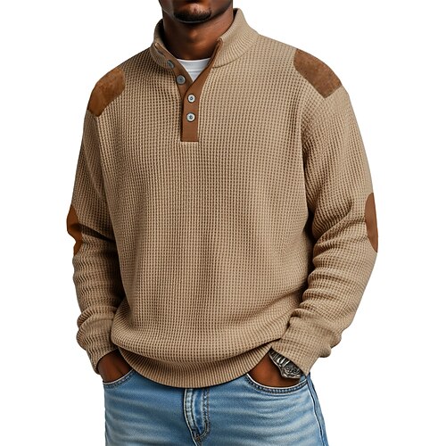 Per uomo Camicia a nido d'ape Maglietta Camicie da uomo con toppe sui gomiti Manica Lunga Blocco di colori Moda Designer Essenziale Colletto dritto Henley Casuale Vacanza Streetwear Autunno Primavera