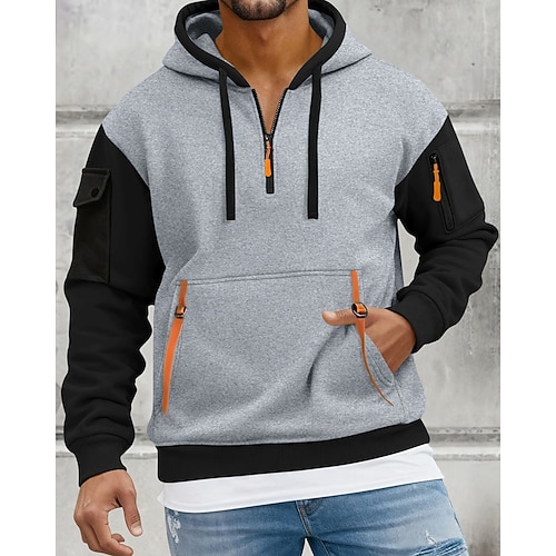 Per uomo Felpa con cappuccio Maglione Felpa con cappuccio e zip corta Rosso bordeaux Blu marino Cachi Grigio Con Cappuccio Blocco di colori Tasca Sport Outdoor Casuale Quotidiano Streetwear
