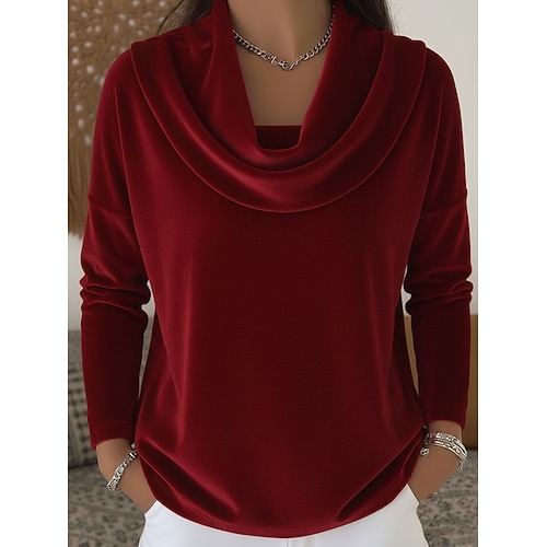 Natale Per donna Blusa Tinta unica Elegante Essenziale Casual Manica Lunga Scollo a V Top Regolari Quotidiano Ferie Blu Vino Viola Verde Primavera Autunno Inverno