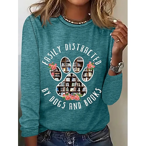 Maglietta donna manica lunga scollo rotondo maniche lunghe tunica floreale grafica vintage elegante classica scollo rotondo top regolari quotidiani stampa blu marrone grigio autunno preautunno