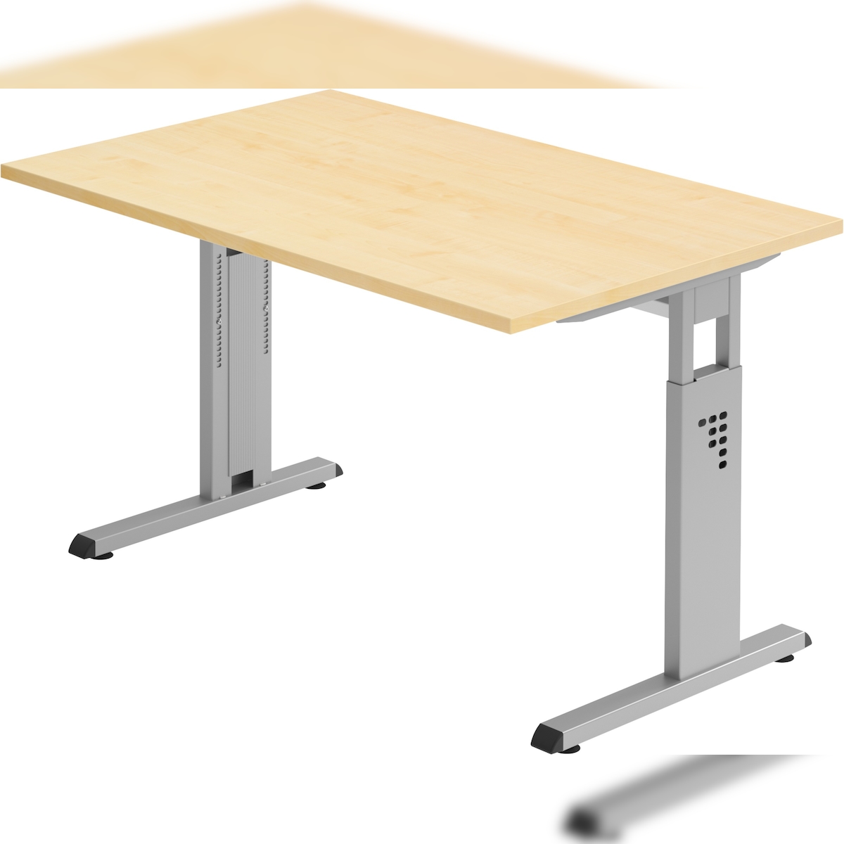 bümö höhenverstellbarer Schreibtisch O-Serie 120x80 cm in Ahorn, Gestell in Silber - PC Tisch klein für's Büro manuell höhenverstellbar,
