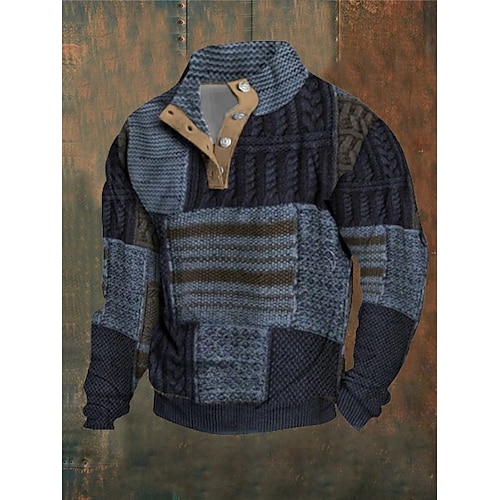Per uomo Geometrico Felpa grafica Felpe Manica Lunga Felpa Henley Stampa Grafica Ferie Uscire Festival Fibbia Stampato Autunno Inverno