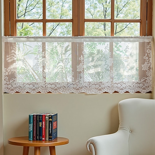 Tende a manto in pizzo a strati, lunghe, vintage, floreali, corte, stile fattoria, per piccole finestre, bar, cucina, tende con fondo smerlato e ricamo, 1 pannello