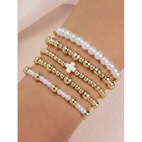 Set di braccialetti da donna con perle e perline dorate: 6 braccialetti elastici con perline a strati, eleganti gioielli di moda per feste, matrimoni e uso quotidiano