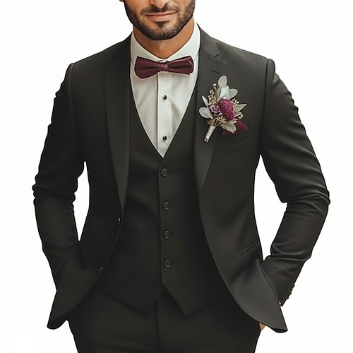 Uomo matrimonio invernale Semi-Formale Abiti da lavoro Bavero classico Nero Borgogna Affari Formale Tinta unita Vestibilità su misura 3 pezzi Monopetto Due Bottoni