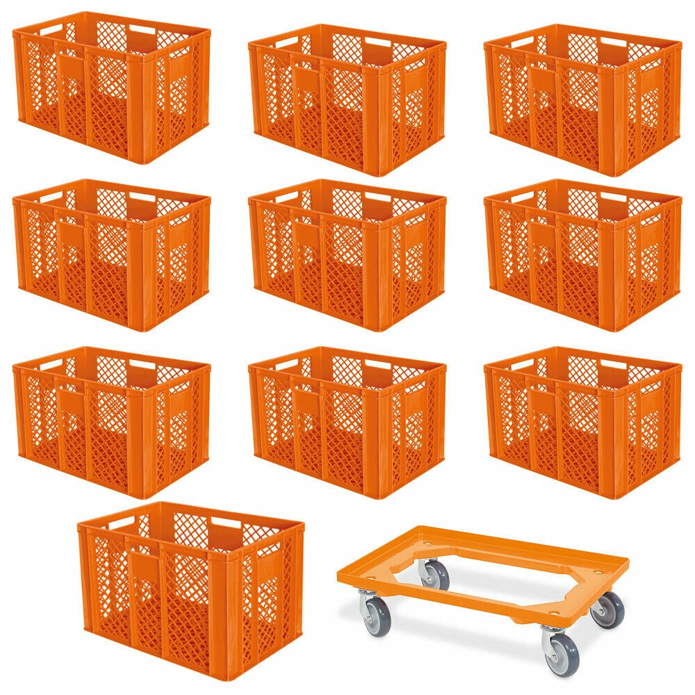 BRB 10 Euroboxen, 600x400x410 mm, lebensmittelecht, orange + Transportroller