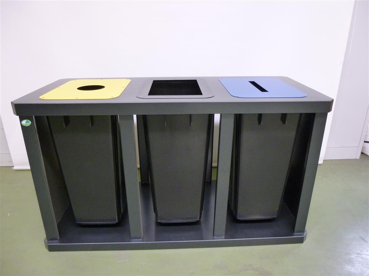 PROREGAL Robuste Wertstoffsammelstation 3-Fach mit Behälter | 58 Liter, HxBxT 67x120x52cm | Verzinkter Stahl | Grau | Mülleimer Abfalleimer Müllkorb