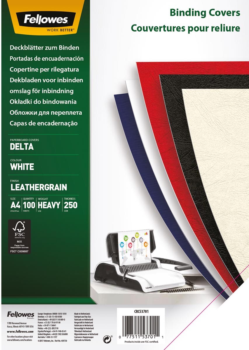 Fellowes Deckblätter A4 Lederstruktur 250g/qm VE=10x100 Stück weiß