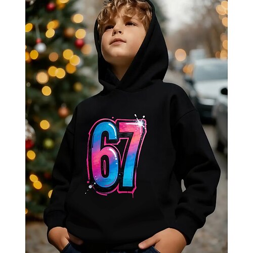 Unisex Ragazze 3D Grafico Gergo divertente 67 Felpa con Cappuccio Maglione Manica Lunga Stampa 3D Primavera Autunno Sport Moda Streetwear Bambini 4-12 Anni Con cappuccio All'aperto Casuale Quotidiano