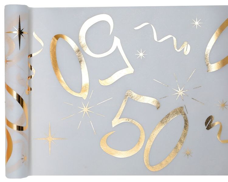 50. Geburtstag weiß gold Tischläufer 5 m x 30 cm Zahl 50