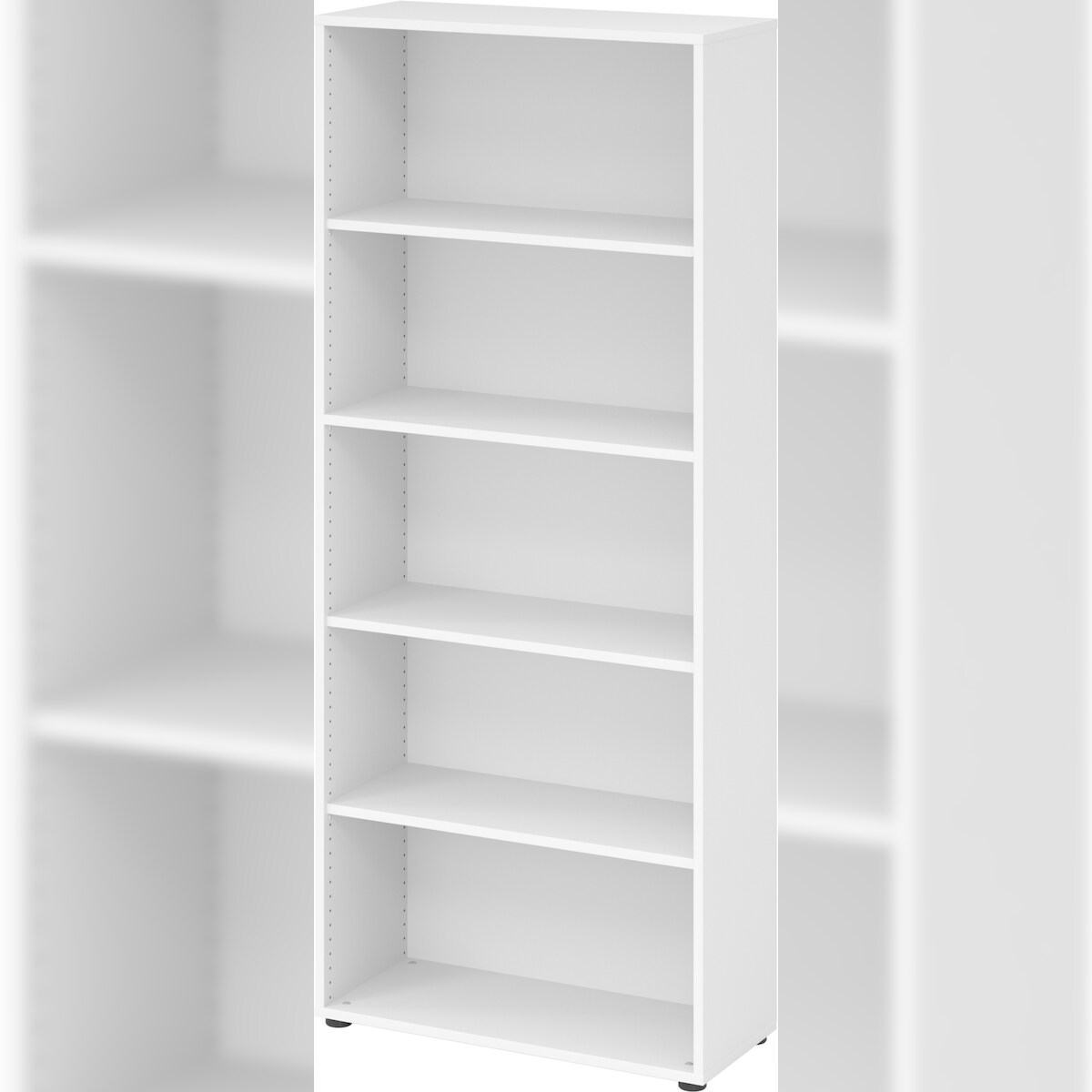 bümö Regal weiß, Standregal aus Holz für 5 Ordnerhöhen - Bücherregal 80 cm breit, Aktenregal für Ordner & Bücher, Büroregal, Holzregal, Ordnerregal,