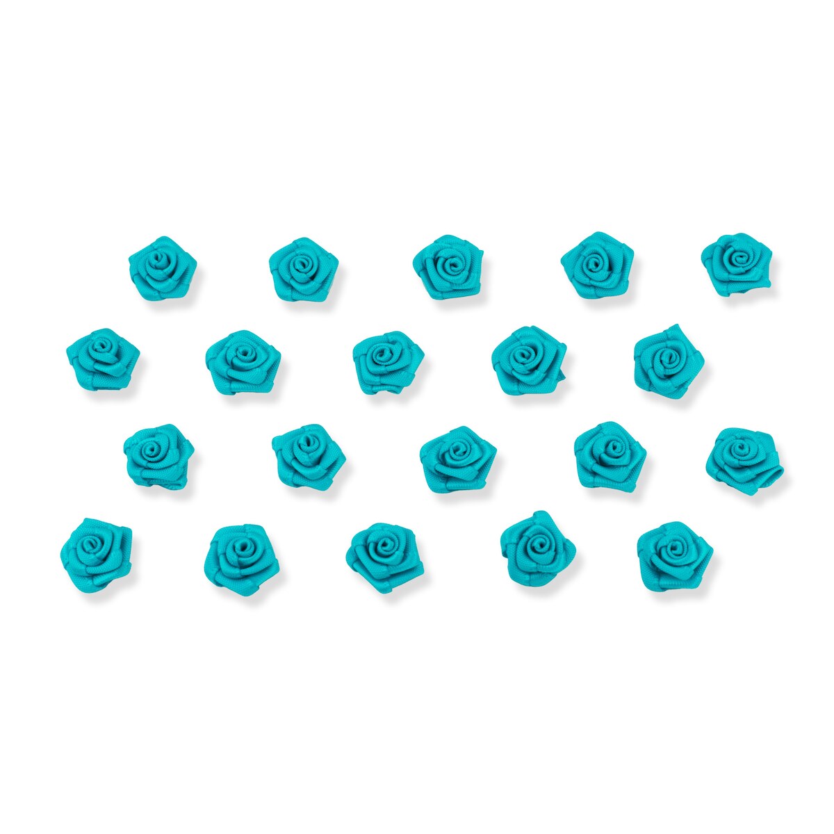 Creativery 20 Satinrosen 15mm Kleine Rosenköpfe Stoffrosen Deko Satinröschen Minirosen Türkis