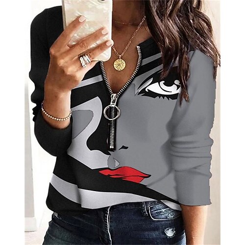 Per donna Felpa Pullover Felpe con cerniera Grafico Geometrico Blocco di colori Moda Casual Manica Lunga Girocollo Top Regolari Streetwear Abbigliamento Quotidiano Cerniera Stampato Arancione Marrone