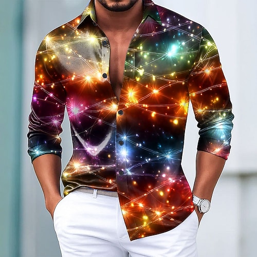 Natale Per uomo Glitter scintillanti Luci natalizie Camicia Camicia in raso Camicia elegante Manica Lunga Moda Casual Feste Ferie Estate Primavera Autunno Collo ripiegato Stampa 3D Camicie con bottoni