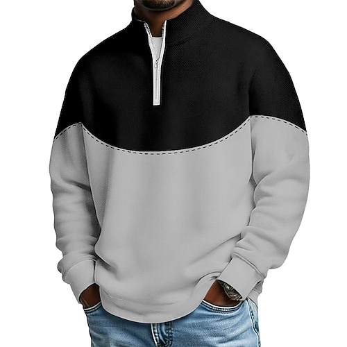 Per uomo POLO Polo con zip a un quarto Strada Giornaliero Collo ripiegabile Chiusura lampo quarto Manica lunga Di tendenza Informale Color Block Cerniera Chiusura lampo quarto Primavera Autunno