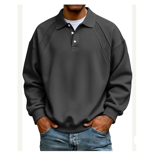 Per uomo Magliette Polo a Nido d'Ape Polo Casuale Formale Collo ripiegato Manica Lunga Moda Tinta unica Testurizzato Bottoni Puro Autunno Primavera Autunno Autunno Inverno Vestibilità regolare