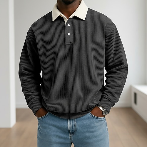 Per uomo Camicia di Velluto a Coste Polo Streetwear Casuale Bavero Manica Lunga Essenziale Moderno Blocco di colori Bottoni Primavera Autunno Vestibilità regolare Nero Blu marino Grigio chiaro