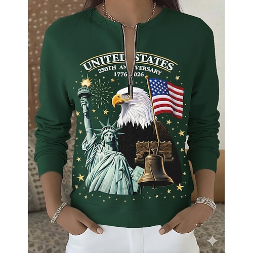 Per donna Felpa Pullover Felpe con cappuccio Blocco di colori Semplice Elegante Caldo Attivo Manica Lunga Mezza zip Top Regolari Lavoro Streetwear Abbigliamento Quotidiano Cerniera Verde primavera
