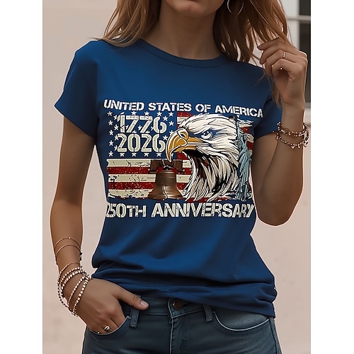 Giorno dell'Indipendenza Americana Per donna Maglietta Grafico Bandiera Nazionale Vintage Elegante Classico Manica Corta Girocollo Top Regolari Quotidiano Weekend Stampato Blu Nero Azzurro Estate