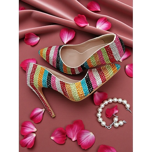 décolleté da donna con tacco quadrato e strass viola - scarpe da festa con punta a punta e glitter per cocktail, eventi e abiti da sera