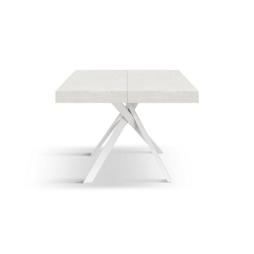 Tavolo legno bianco frassinato, gambe metallo bianco 95x90-145x90cm