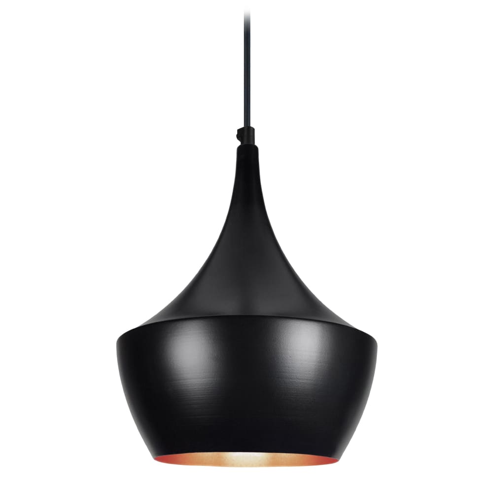 Sospensione metallo ; Alt.88cm nero ;Paralume: nero ,rame
