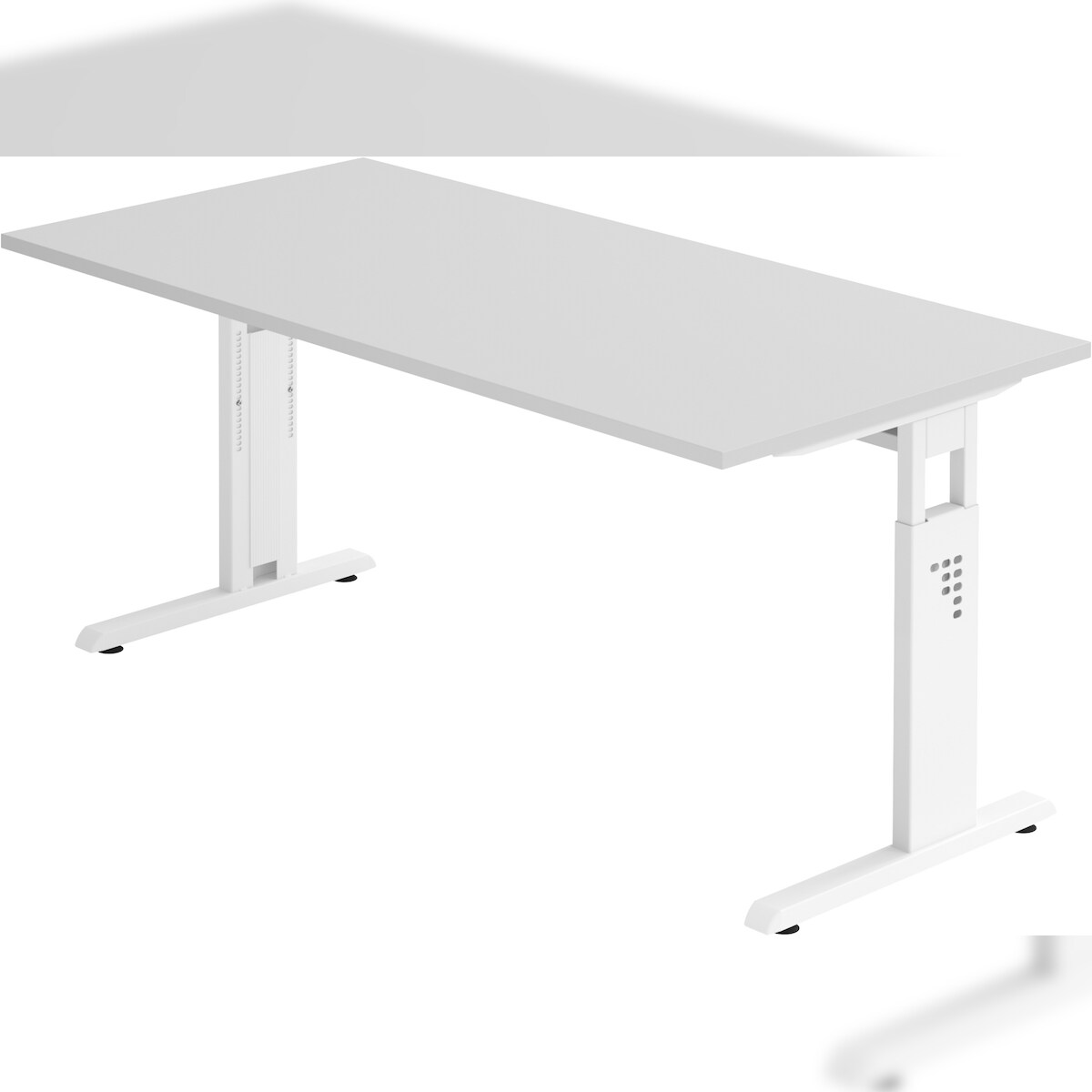 bümö höhenverstellbarer Schreibtisch O-Serie 160x80 cm in grau, Gestell in weiß - PC Tisch für's Büro manuell höhenverstellbar, Computertisch