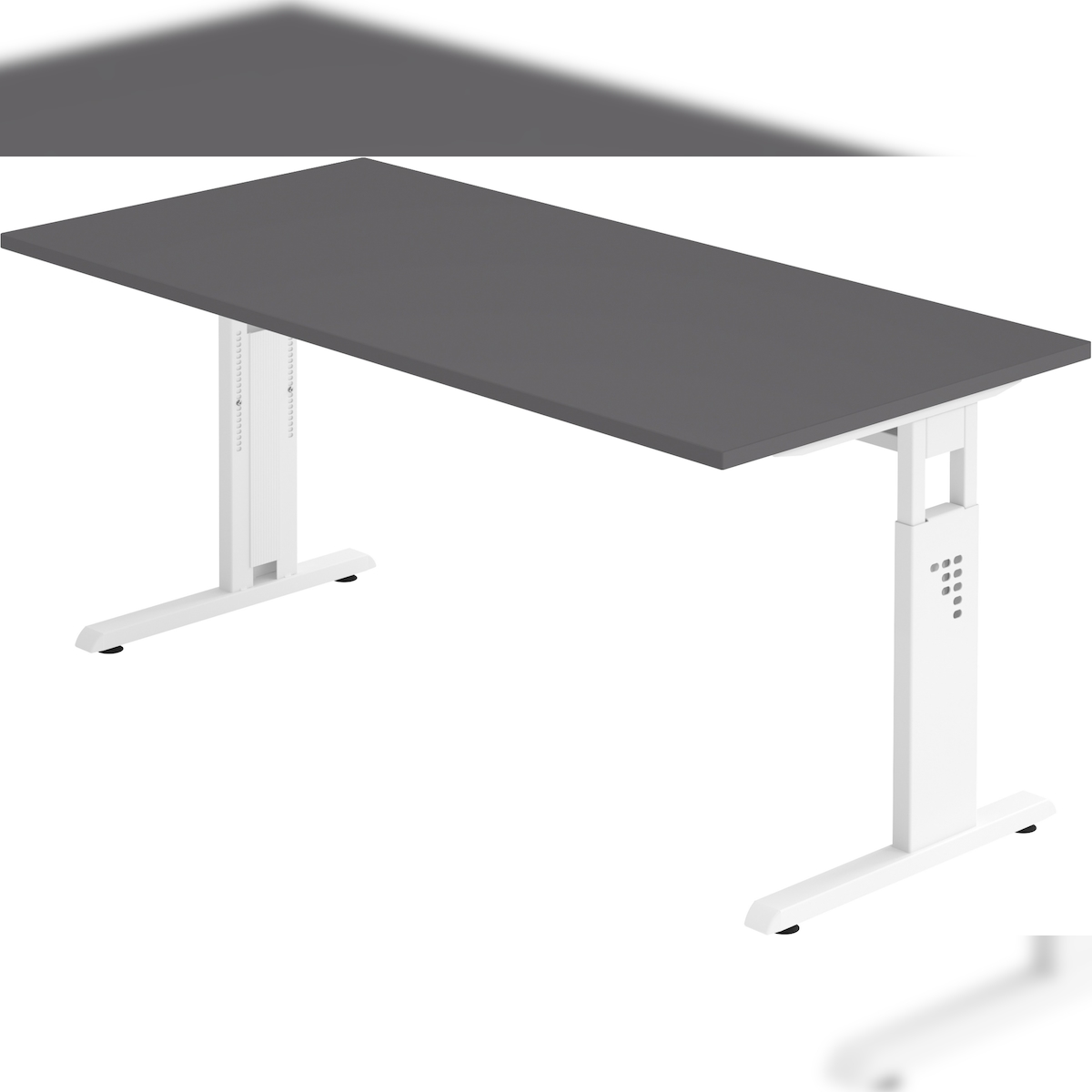bümö höhenverstellbarer Schreibtisch O-Serie 160x80 cm in Graphit, Gestell in weiß - PC Tisch für's Büro manuell höhenverstellbar, Computertisch