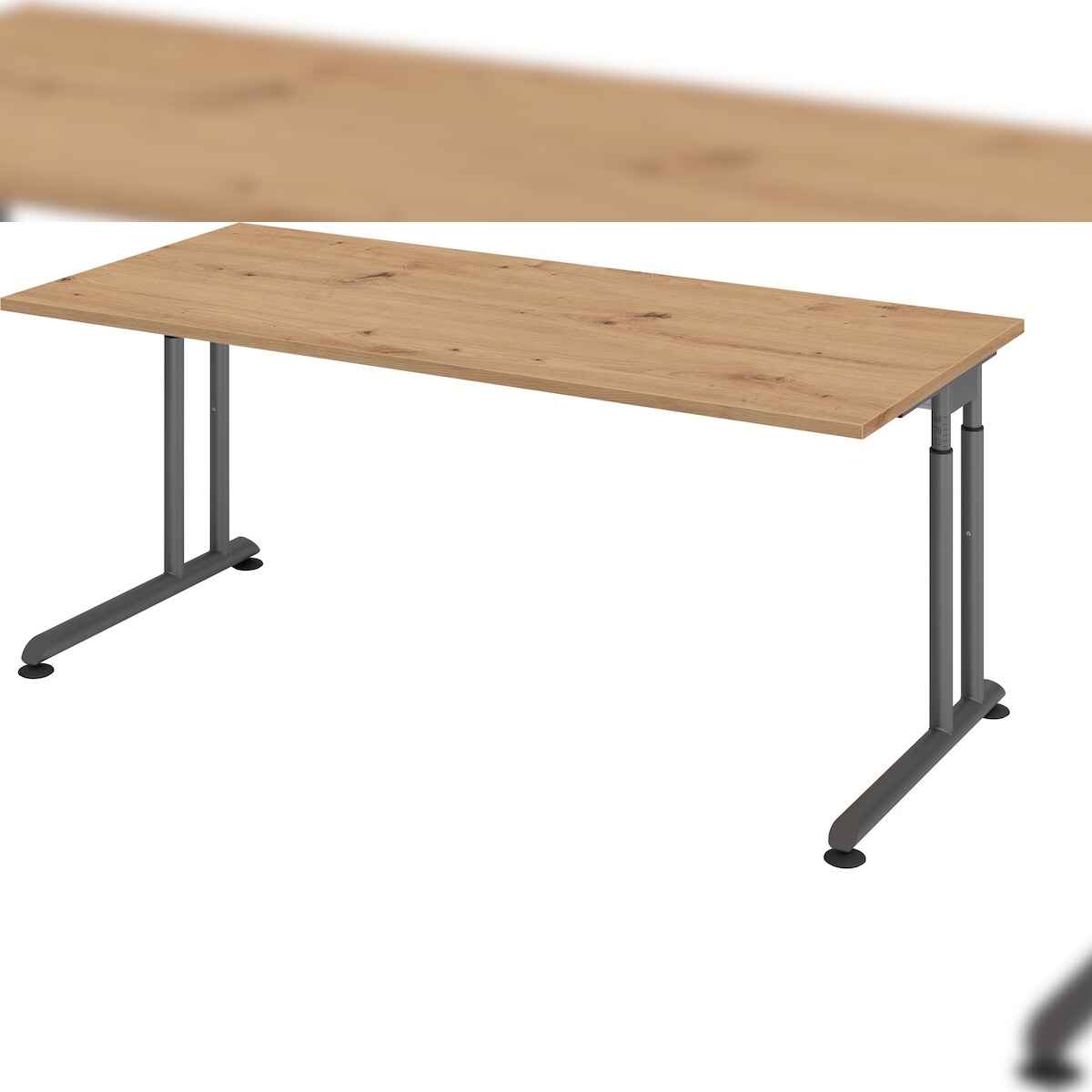 bümö höhenverstellbarer Schreibtisch Z-Serie 180x80 cm in Asteiche, Gestell in Graphit - großer PC Tisch für's Büro manuell höhenverstellbar,