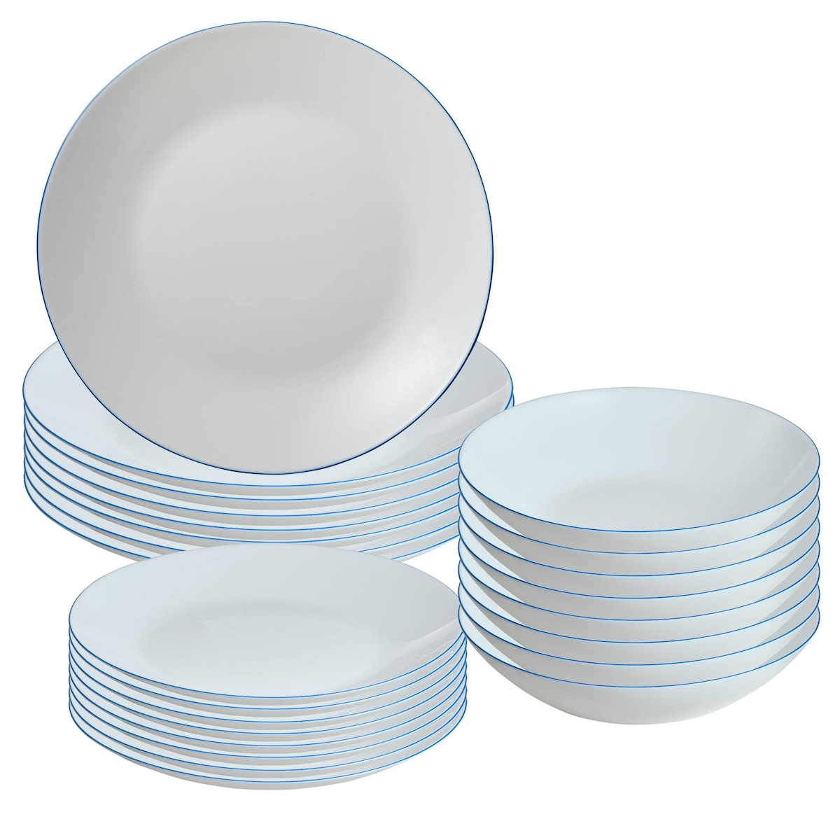 12x Teller GRACE, flach, Ø 24 cm, Emaille, weiß schwarzer Rand