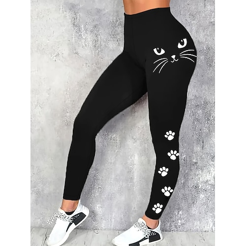 Per donna Pantaloni Eleganti Leggings Leggings comodi Vacanza Vintage Streetwear Lunghezza intera Naturale Grafico Animale Gatto Elastico in vita Stampato Comodo All'aperto Confortevole Alta