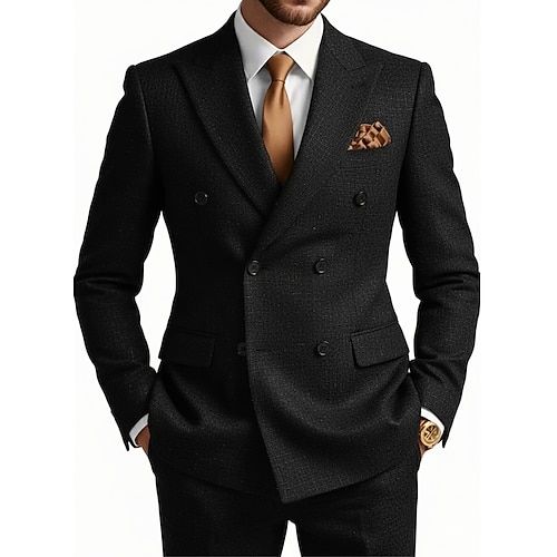 Uomo Matrimonio Completi A lancia Nero Bianco Affari Formale Tinta unita Vestibilità su misura 2 pezzi Doppiopetto a sei bottoni