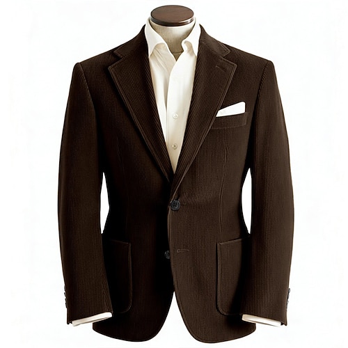 Uomo Casuale Semi-Formale Abito in velluto a coste Bavero classico Nero Borgogna Moda Casual A righe Vestibilità su misura 2 pezzi Monopetto Due Bottoni