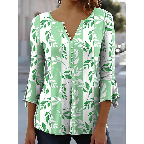 Per donna Blusa Floreale Grafico Elegante Manica 3/4 Girocollo Top Regolari Quotidiano Uscire Volant Bottoni Blu Viola Verde Cachi Estate Primavera