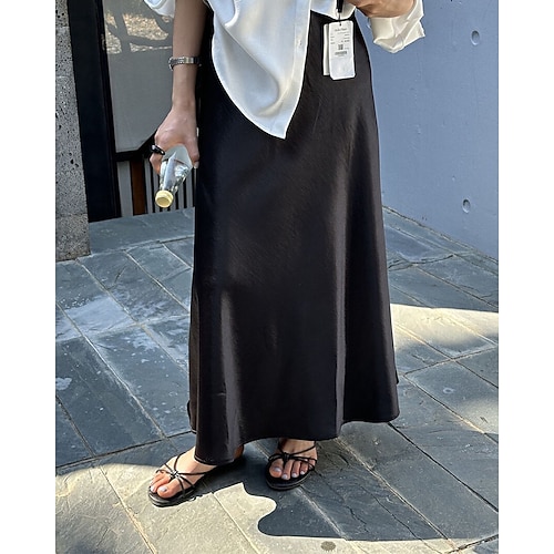 Per donna Elegante Moda Casual Maxi Vita media Gonne Semplice Patchwork Micro-elastico Quotidiano Streetwear Nero Mandorla Rosa Rosa pallido Estate Poliestere