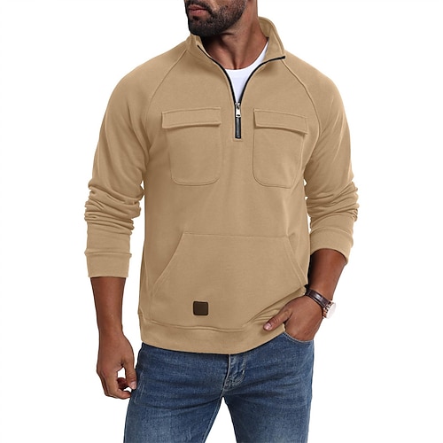 Per uomo Maglia Felpa con zip corta Nero Verde militare Cachi Caffè Grigio Colletto Mao Semplice Tasca Sport Outdoor Quotidiano Ferie Poliestere Streetwear Essenziale Casual Primavera Autunno