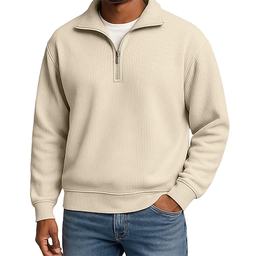Per uomo Maglia Velluto a coste Maglione Felpa con zip corta Aalbicocca Nero Marrone Grigio Colletto Mao Semplice Testurizzato Sport Outdoor Casuale Quotidiano Streetwear Cool Abbigliamento Sportivo