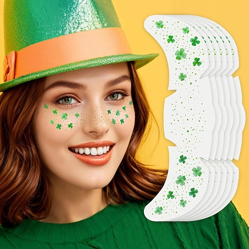 Confezione da 6 adesivi per tatuaggi glitterati con lentiggini e foglie verdi irlandesi (stile femminile), trucco per il viso con glitter verdi, adesivi per tatuaggi per il viso di San Patrizio