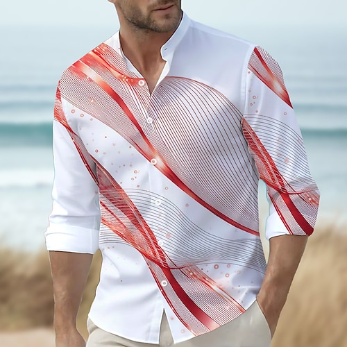 Per uomo Sfumatura Motivo Geometrico Onde Camicia Camicia con colletto alla coreana Manica Lunga Moda Casual Abbigliamento Quotidiano Ferie Primavera Autunno Collo alla coreana Colletto alla coreana