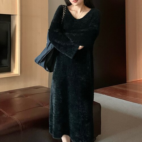 Per donna Abito Midi Abito nero Vestito Casual Abito Sottoveste Elegante Moda Moderno Quotidiano All'aperto Uscire Vestibilità regolare Semplice Manica Lunga Scollo a V Nero Primavera Inverno Autunno