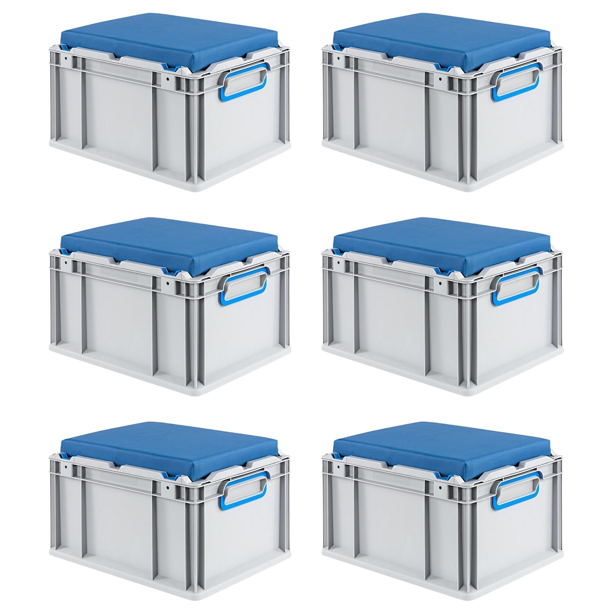 PROREGAL 6x Eurobox NextGen Seat Box Blau | HxBxT 26,5x30x40cm | 20 Liter | Griffe geschlossen | Eurobehälter, Sitzbox