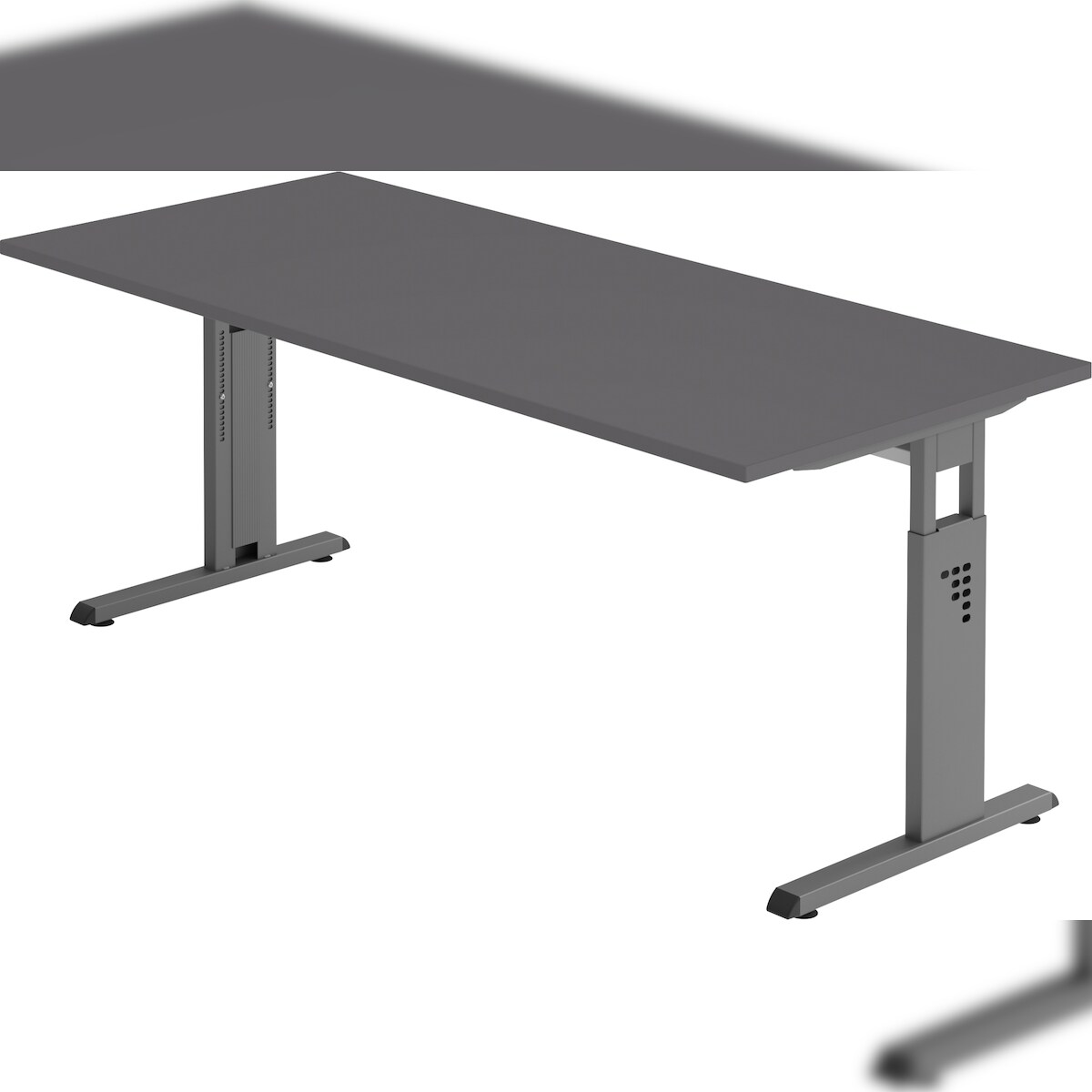 bümö höhenverstellbarer Schreibtisch O-Serie 180x80 cm in Graphit, Gestell in Graphit - großer PC Tisch für's Büro manuell höhenverstellbar,
