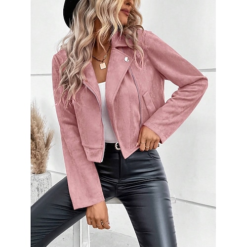 Per donna Giacca Casual Gilet in pelle scamosciata Confortevole Traspirante Cerniera Casual Semplice Vacanza Streetwear Casuale Abbigliamento quotidiano Cerniera Corto Collo ripiegato Vestibilit